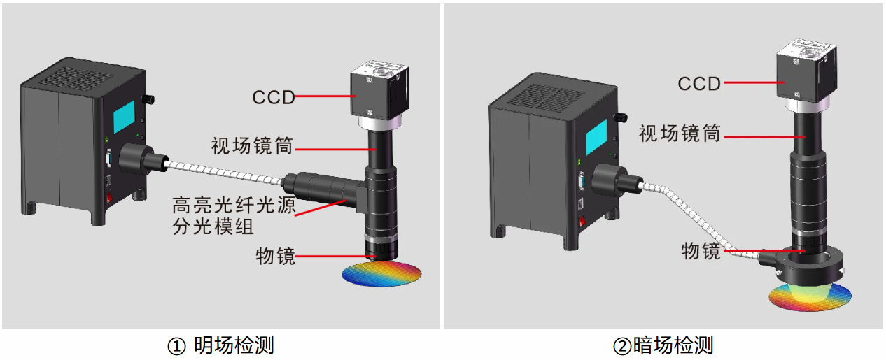 在半導體制造過程中,全自動晶圓缺陷檢測技術對光學成像效果要求很高。檢測分明場和暗場,明暗場大多使用高亮光纖光源成像,觀察硅片的表面缺陷(如崩邊缺角,表面臟污)。樂視科技新升級2代新款高亮光纖光源,新款2SLG250比2SLG150-W亮度提升60%。發光效能高,發熱量低,是半導體檢測的最佳搭配。