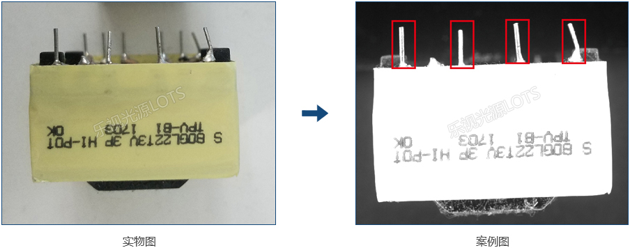 產(chǎn)品反光強(qiáng)烈,對(duì)均勻性要求高。使用低角度無(wú)影光,能使針腳分離且底 座面均勻的呈現(xiàn)。